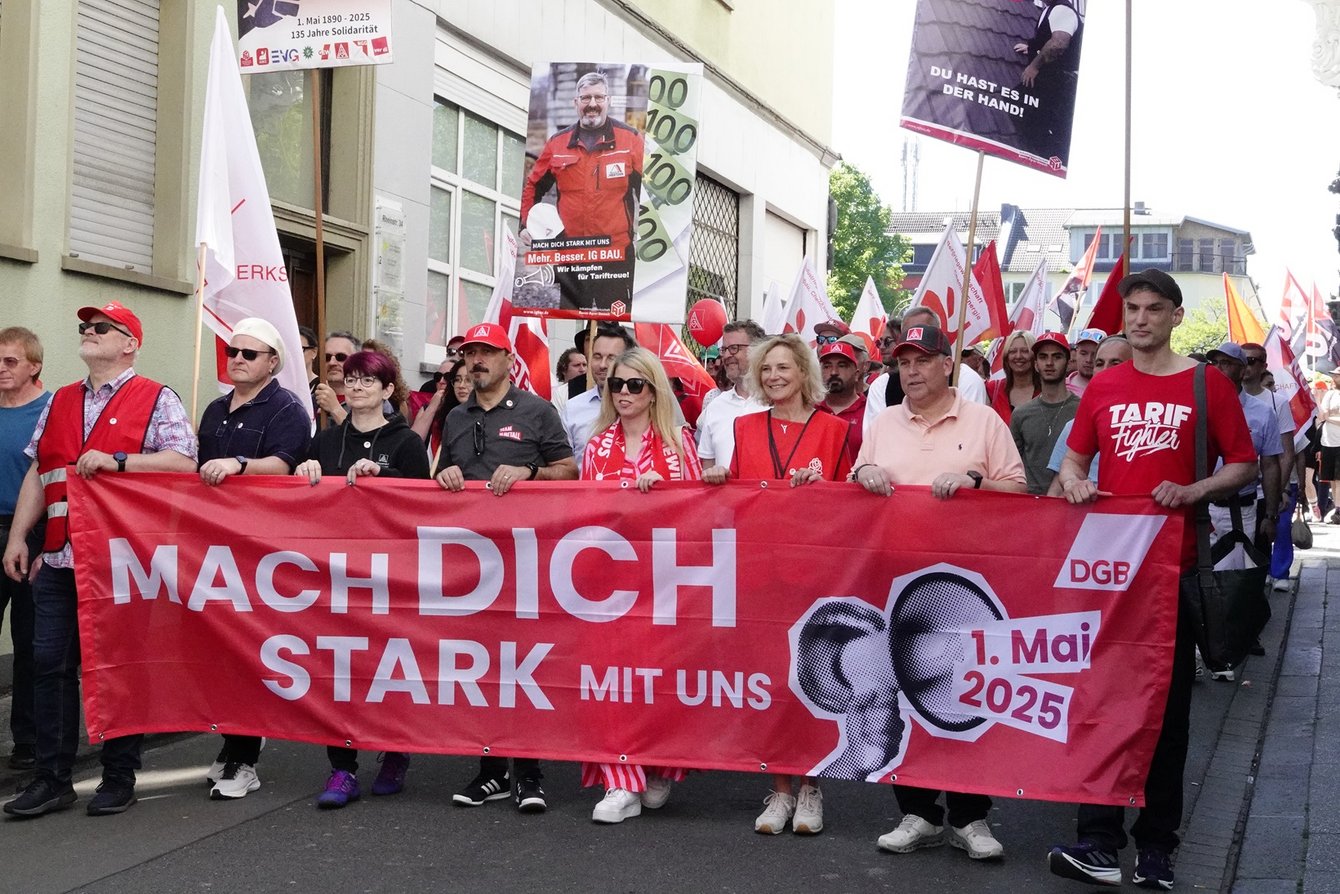 1. Mai 2025 in Koblenz: Volker Daiss am Banner 2. von links